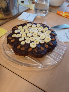 Es gab selbstgemachte Spätzle (auch glutenfrei), Linsen und Bratwürste von einer neuen Familienmetzgerei in St. Peter. Zum Dessert hatten wir einen veganen Kuchen. Ein Experiment für uns, kann man noch verbessern, aber schon ganz gut.