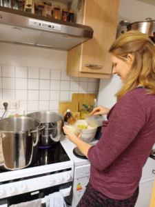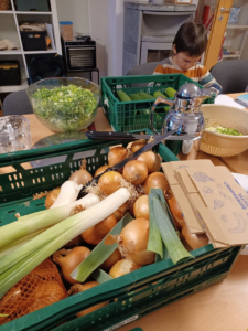 Im Vorfeld des Weihnachtsmarktes haben wir gemeinsam die Plätzchen eingetütet und fleißig Gemüse geschnippelt für Friederikes veganes Gemüsecurry auf dem Kirchzartener Weihnachtsmarkt.